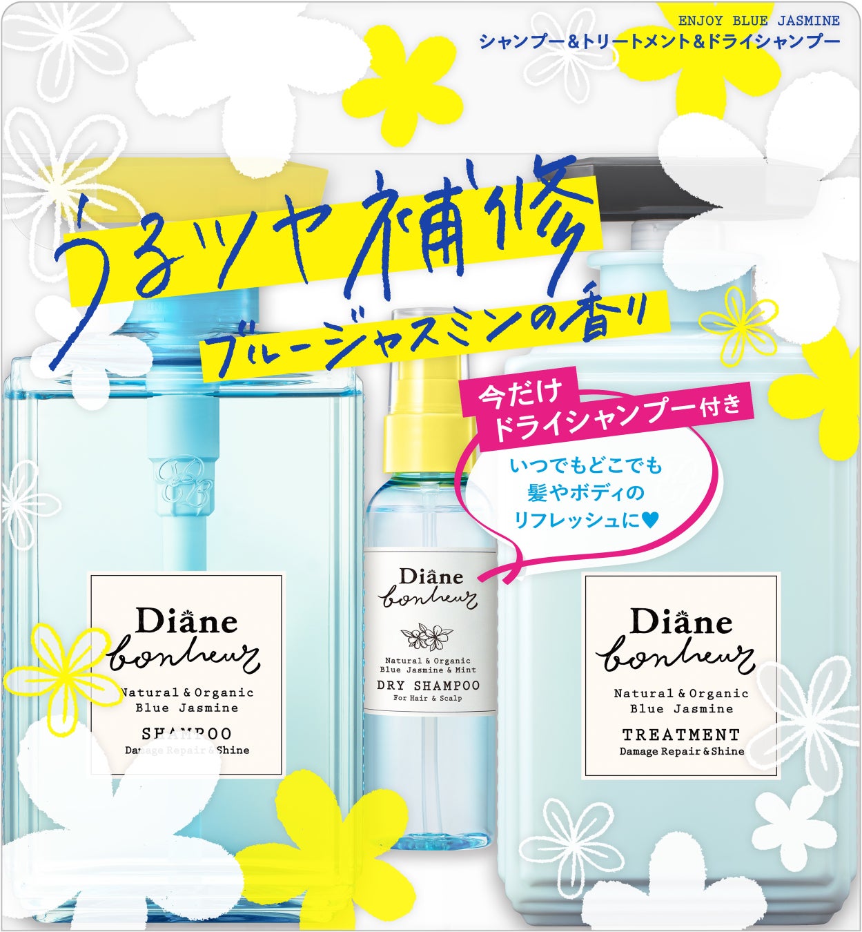 渋谷ストリームエクセルホテル東急のコンセプトは「渋谷から世界へ 感性を刺激するホテル」。今回の特別ルームでは、ブランドの最大の魅力である「香り」が華やかにルームを彩り、ダイアンボヌールに包まれる空間を演出。至る所でダイアンボヌールの世界観をご堪能いただけます。またダイアンボヌールは5月15日(日)より「ブルージャスミンの香り」のシャンプー&トリートメントにミニサイズのドライシャンプーが付いたお得なセットを数量限定で発売いたします。人気のドライシャンプーは、98%以上天然由来成分※1配合のミストタイプで、ヘアにもボディにもマルチにお使いいただけます。