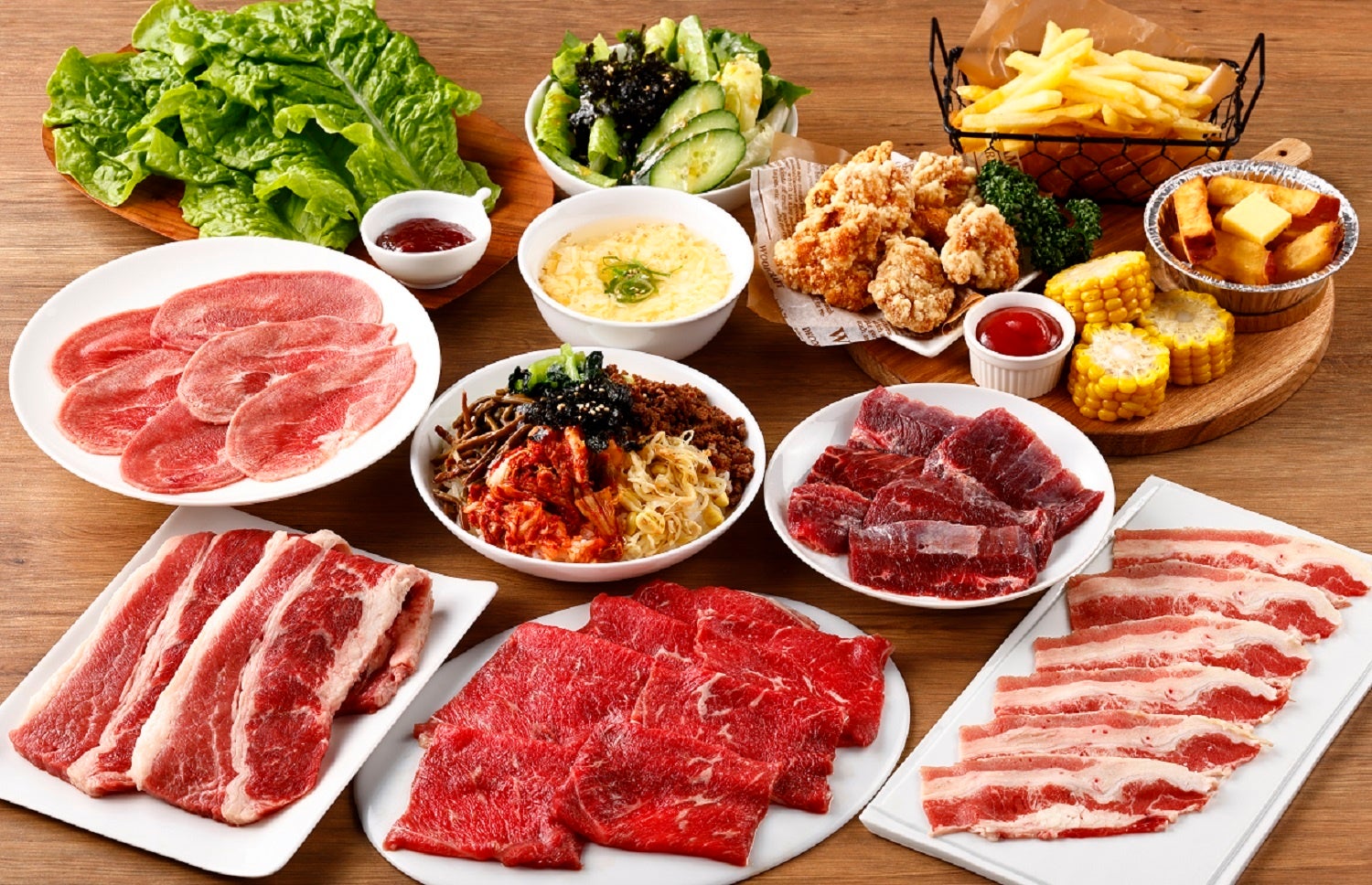 - 肉からサイドメニューまでこだわりが詰まった食べ放題メニュー