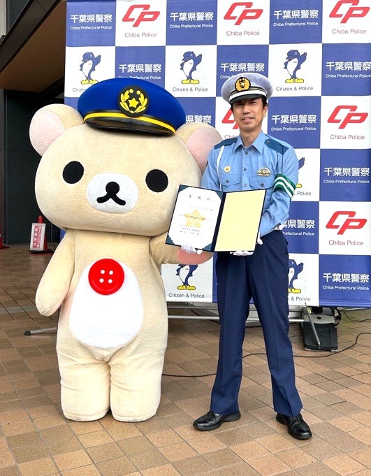 コリラックマは今回初めて警察の一日署長に就任し、署長委嘱式にて委嘱状を受け取ると、警察帽子をかぶった姿で写真撮影に応じ、訪れた方に交通安全を呼びかけました。