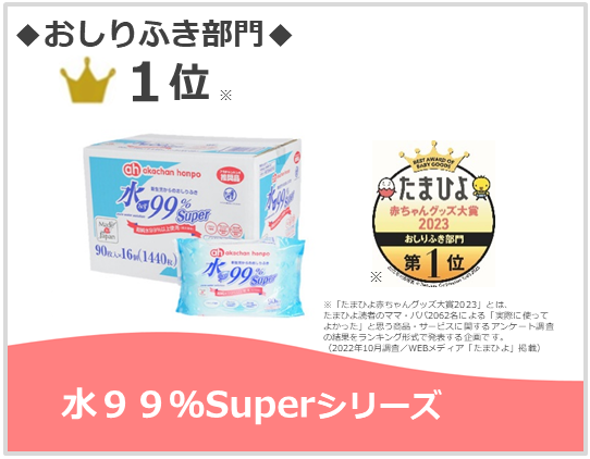 「たまひよ赤ちゃんグッズ大賞2023」10年連続で1位を獲得!水99%Superシリーズをはじめ、アカチャンホンポ商品が6つの部門で受賞