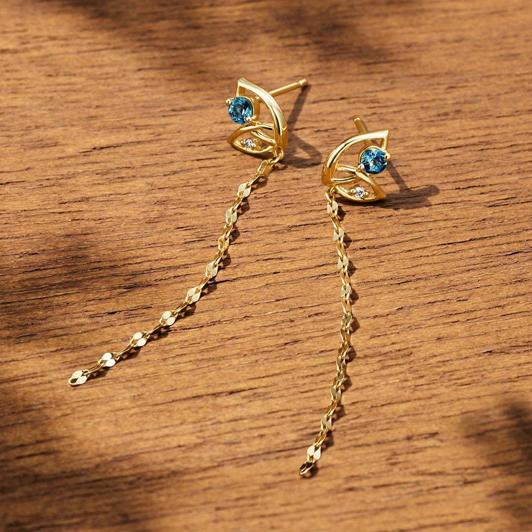 重なり、揺れ動くリーフの透かし模様に、深く輝くロンドンブルートパーズを添えたシリーズも。「知性」や「誠実」の石言葉を持つロンドンブルートパーズが、秋の風を受けた葉の動きの中に煌めく大切な時間を照らします。