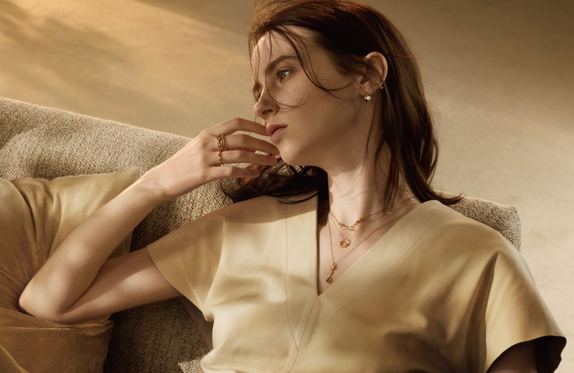 ひとつひとつが唯一無二の形やカラーを持ったストーンに、自然の情景を織り交ぜたデザインが、秋めく日々の装いに彩りをプラス。大切な想い出に心を預ける、ゆったりとした時間をジュエリーとともに過ごして。