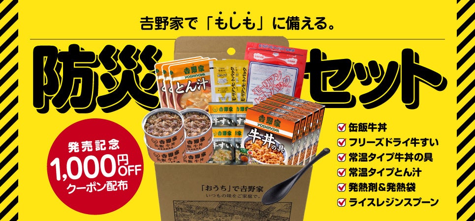株式会社吉野家(本社:東京都中央区 代表取締役社長 河村泰貴、以下吉野家)は、吉野家公式通販ショップなどで、防災の日に先駆けて、8月2日(金)より非常用保存食「吉野家缶飯」を含む『吉野家 常温保存食セット』8,964円の販売を開始しました。また、「吉野家缶飯」の累計販売個数は220万食以上※となりました。多くの皆様からのご愛顧に感謝すると共に、非常時にこそ日常食を備えていただきたいという思いから、8月23日(金)から9月6日(金)まで、「吉野家缶飯」を20%オフ、送料込みで販売します。