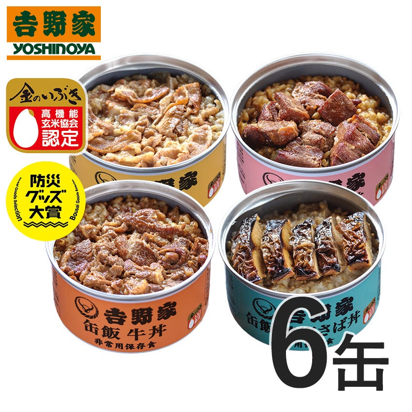 吉野家公式通販ショップ、非常用保存食「吉野家缶飯」を含む『吉野家 常温保存食セット』を本日より販売開始
