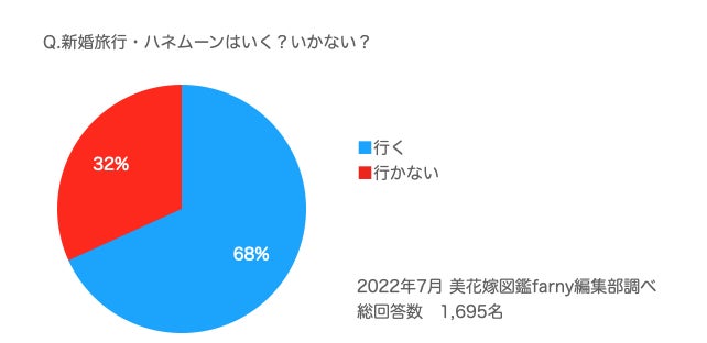 今回の新婚旅行・ハネムーンに関してのアンケートは、新婚旅行・ハネムーンに行くと回答した花嫁様が全体の68%の1,224名と半数以上を占める結果となりました。