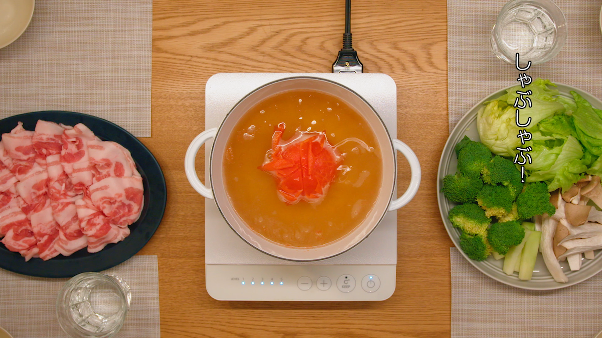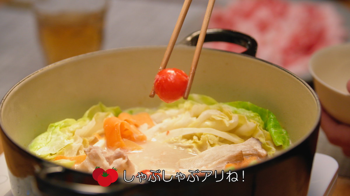 本動画は「ミツカン みんなのキッチンプロジェクト」の一環で制作されたもので、「劇団しゃぶしゃぶ」メンバーである下野紘さん、杉田智和さん、江口拓也さんに、新メンバーとなる早見沙織さんが加わりパワーアップ。5人がそれぞれがしゃぶしゃぶに用いられる野菜たちにアテレコし、感情を持った食材同士がはじめて出会うシーンや恋模様をコミカルに表現しながら、野菜を豪快に使ったしゃぶしゃぶ時短レシピを紹介します。