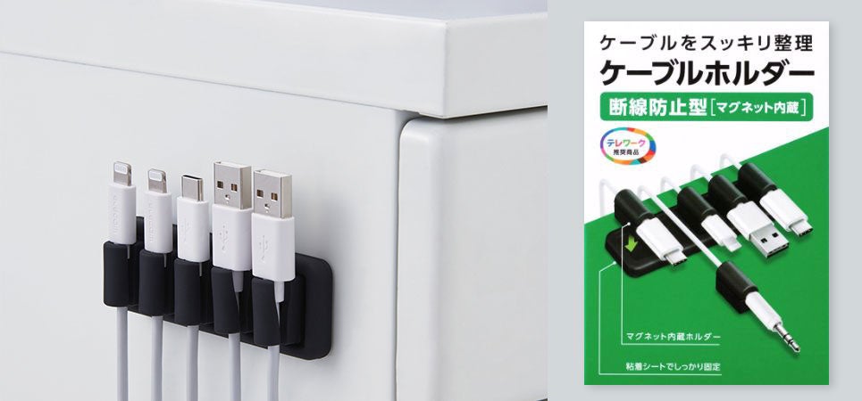 断線しやすい部分まで覆うホルダー構造!ケーブルを守りマグネットでカチッと整理できる断線防止ケーブルホルダーを新発売