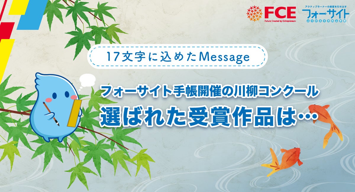 「主体性」×「生産性」で人的資本の最大化に貢献することをミッションに、DX推進事業・教育研修事業を展開する株式会社FCE(本社:東京都新宿区、代表取締役社長:石川淳悦、証券コード9564、以下FCE)は、2025年5月21日〜6月13日にかけて「第5回 フォーサイト手帳川柳コンクール」の作品の募集し、当社のサービス・小中高生向けビジネス手帳「フォーサイト」(以下、フォーサイト手帳)を活用する全国の小中高生から700件近くの応募をいただきました。 このたび、寄せられた作品の中から最優秀賞1名、 優秀賞3名の受賞者を発表いたします。