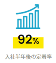 KSキャリアでは、内定率よりも定着率を重視しています。不動産業・建築業の業務内容を熟知したエージェントが、求職者に致して1on1でサポートするため、入社半年後の定着率は92%と高い水準となっています。