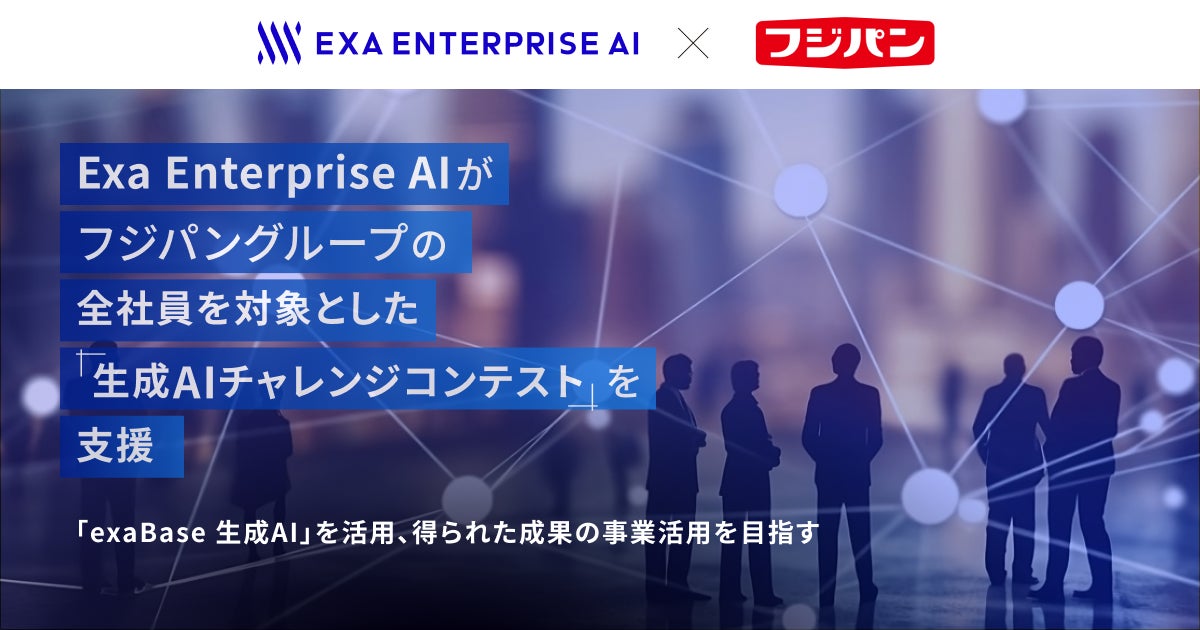 株式会社エクサウィザーズのグループ会社である株式会社Exa Enterprise AI(東京都港区、代表取締役:大植 択真、以下Exa Enterprise AI)は、フジパングループ本社株式会社(以下フジパングループ)が当社の法人向け生成AIサービス「exaBase 生成AI」を導入したことをお知らせします。フジパングループは、社員同士が切磋琢磨し、最先端技術を駆使した新しいビジネスアイデアやサービスを生み出す場として企画された「生成AIチャレンジコンテスト」を全社員を対象として実施しており、Exa Enterprise AIはコンテストの設計から成果の事業活用までを支援してまいります。