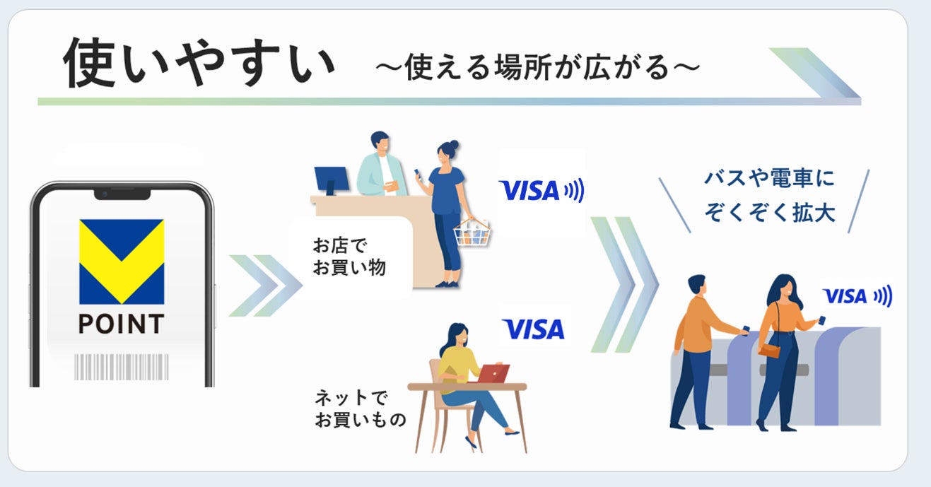 『Vポイント』は、これまでよりも多くの生活シーンで貯めて・使える、特定の経済圏に縛られないポイントとして、2024年春よりサービスを開始する予定です。新たにご利用されるお客さまにとってはもちろん、既存のTポイント・Vポイントをご利用のお客さまにとっても、これまでと同様のご利用方法に加えて、さらに便利にご利用いただけるポイントサービスとなります。さらに、お客さまにとって魅力的なポイントへ進化させるとともに、Tポイント提携先への送客強化にもつなげてまいります。