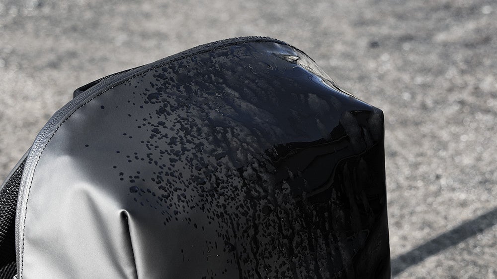 耐水性が高い生地とファスナーテープからの水の侵入をブロックする、YKKの止水ファスナーを採用。