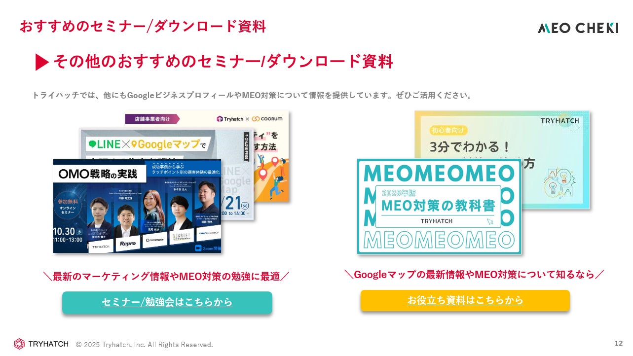 MEOやGoogleビジネスプロフィールについてさらに理解を深めたい方向けに、セミナーや資料を随時ご紹介しています。