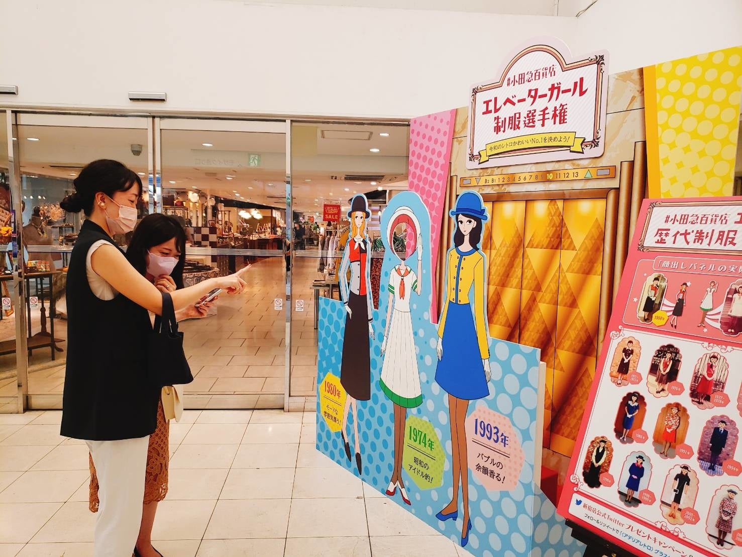 エレベーターガールのレトロかわいい制服に注目!新宿小田急の‟エレガなりきり”顔出しパネルが登場