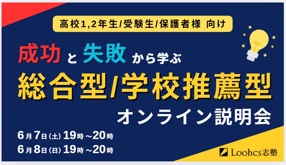 Loohcs株式会社(代表取締役 : 嶺井 祐輝 本社所在地 : 渋谷区代々木)は、同社運営のルークス志塾福岡天神校舎で、地方から総合型・学校推薦型選抜で合格を目指す高校生・受験生・保護者様を対象とした特別対策「総合型・学校推薦型選抜 オンライン説明会」を2025年6月7日(土)、8日(日)に開催いたします。