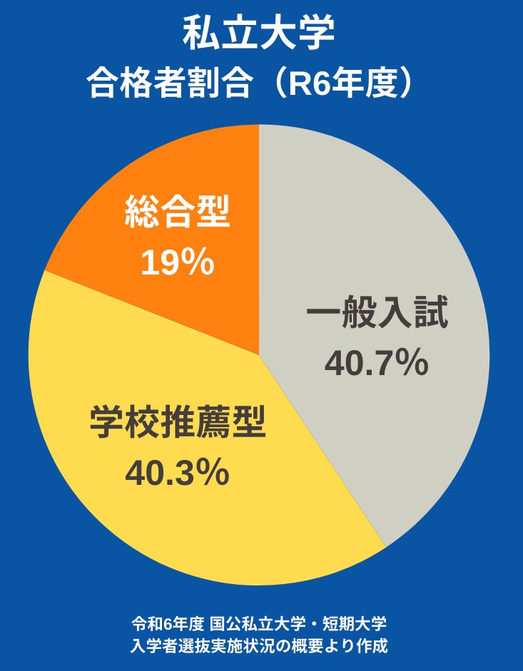 上記のデータからも分かるように、国公立・私立を問わず、推薦制度を利用する受験生は着実に増えており、多くの高校生が進路の選択肢として積極的に取り入れています。