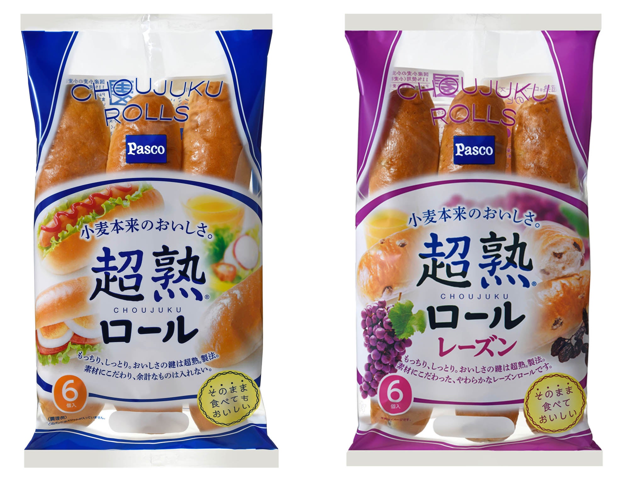 新商品の発売に合わせ、「超熟ロール 6個入」、「超熟ロールレーズン 6個入」のパッケージデザインをリニューアルします。