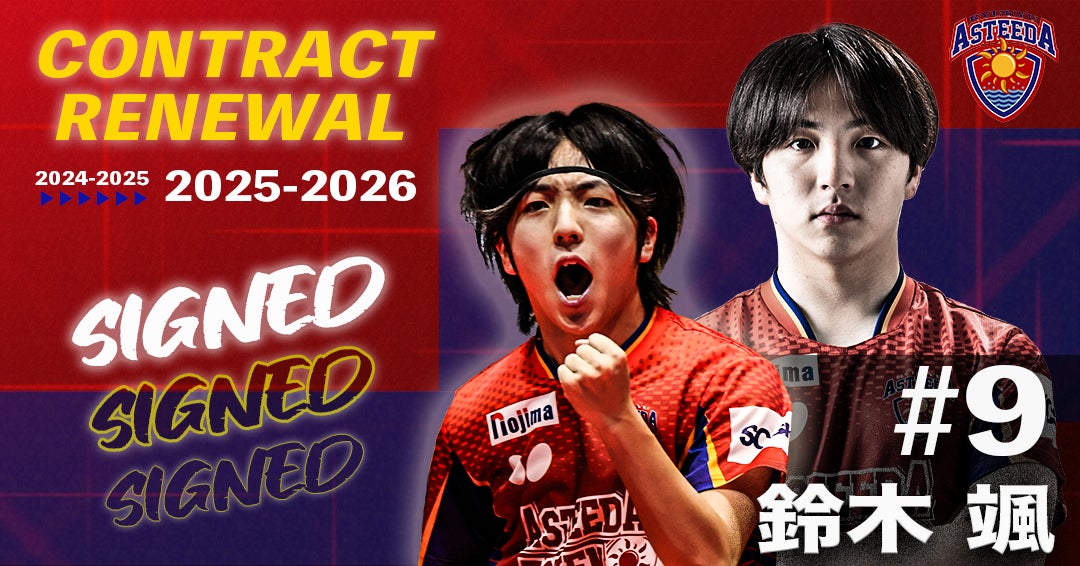 琉球アスティーダスポーツクラブ株式会社(沖縄県中頭郡中城村、以下、琉球アスティーダ)は、鈴木颯選手と2025-2026シーズンの契約を更新しましたので、お知らせ致します。