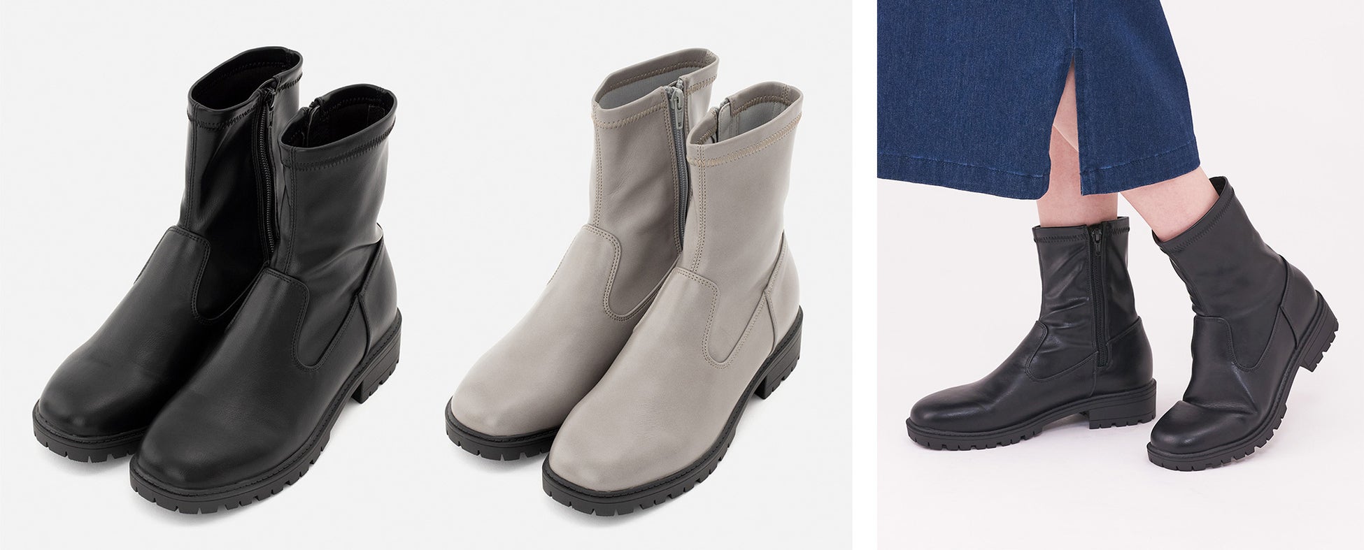 昨年完売した大人気「Almoレインストレッチブーツ」をよりすっきりとしたシルエットになるようアウトソールからオリジナルで作成しアップデートして新登場!シンプルでありながら、足元にボリュームをもたせつつ、足首はスッキリ細くみせられるデザインに仕上げました。また、しっかりと厚みのあるふわふわなインソールで疲れにくく、アッパーはストレッチ性のある素材で履き心地にもこだわりました。
