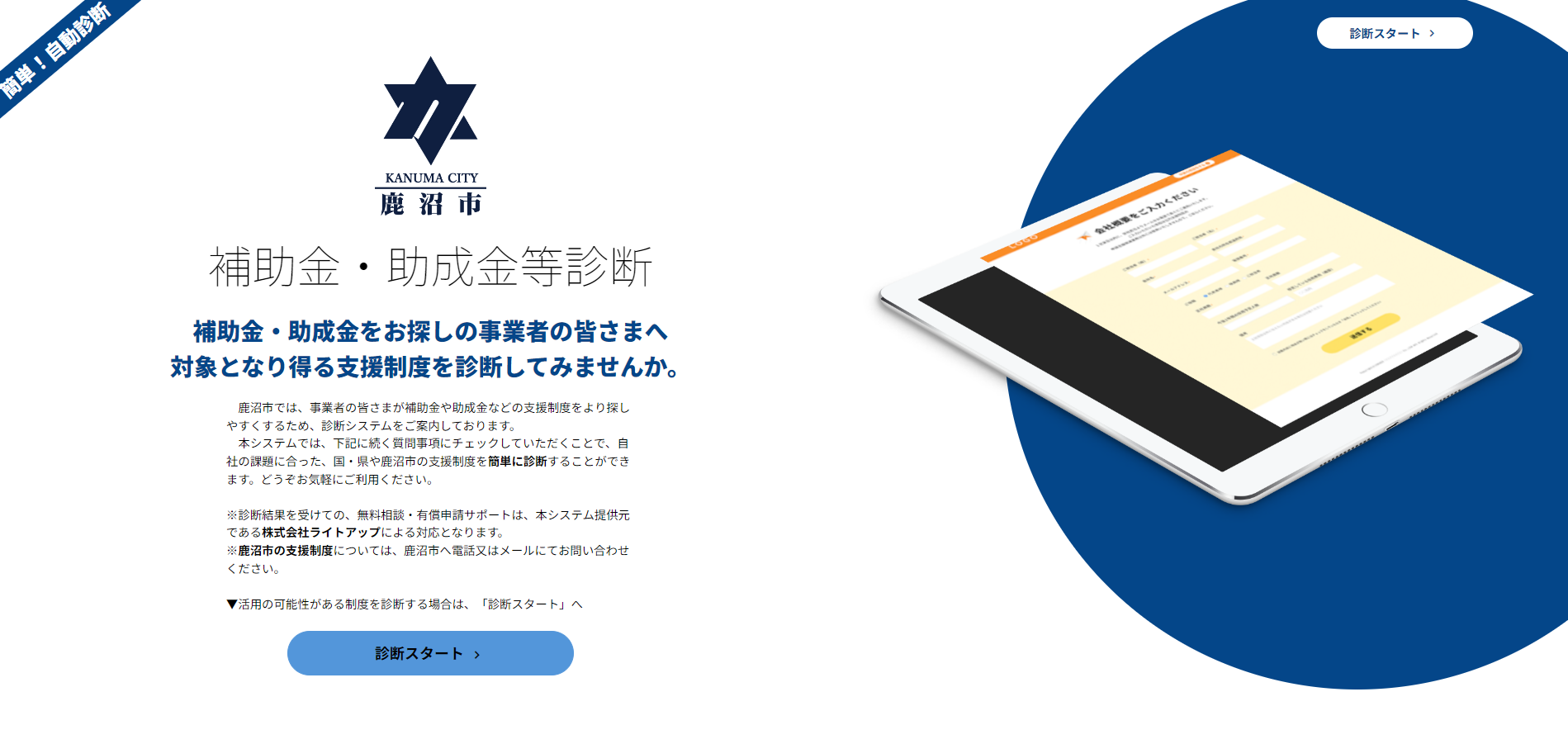【26自治体目】ライトアップ、鹿沼市へ「Jシステム(補助金・助成金自動診断システム)」を提供開始。市内事業者に向けた支援体制の強化を共同実施