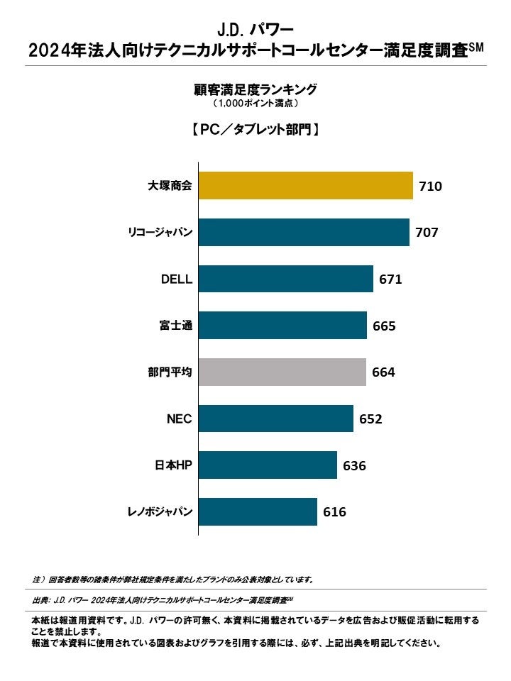 CS(顧客満足度)に関する調査・コンサルティングの国際的な専門機関である株式会社J.D. パワー ジャパン(本社:東京都港区、代表取締役社長:山本浩二、略称:J.D. パワー)は、J.D. パワー 2024年法人向けテクニカルサポートコールセンター満足度調査℠の結果を発表した。本調査は「サーバー」、「PC/タブレット」、「コピー機/プリンター」、「業務ソフト」の4つのIT製品部門における、企業向けのテクニカルサポートコールセンターの満足度を測定している。