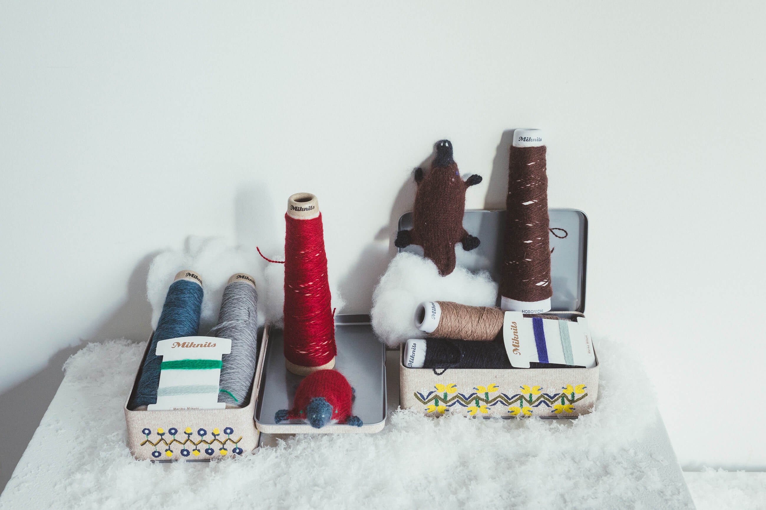 柔らかなアンゴラ糸でつくる編みぐるみキット。今年のモチーフは三國さんが「ルックスが好み」と語るカモノハシです。ずんぐりした体につぶらな瞳。手にするだけで癒やされます。