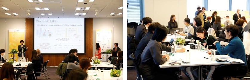 神奈川県⽴保健福祉⼤学の吉田 穂波先生らと共に、「働く女性 健康スコア」調査結果や企業が働きやすい環境実現にむけた、目指すべきヘルスコミュニケーションについての紹介を行いました。後半は、それらをソリューションとして、企業にて活用し機能させるにはどのような手法や視点を持つべきかについて、参加企業担当者間にて意見を交わすワークショップを行いました。