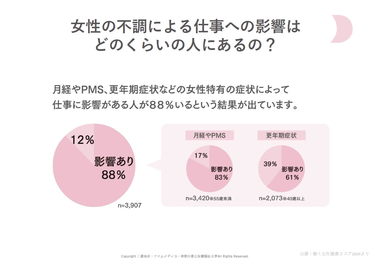 [健康課題] 40 代以上では 3 人に 1 人が「更年期症状」「月経・PMS」の両症状で仕事に影響あり