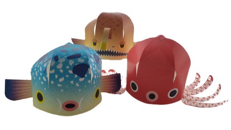 3歳以上からご参加いただける工作体験会です。フグ、アンコウ、タコの3種類からお選びいただき、かわいいおさかなの帽子を作っていただけます。