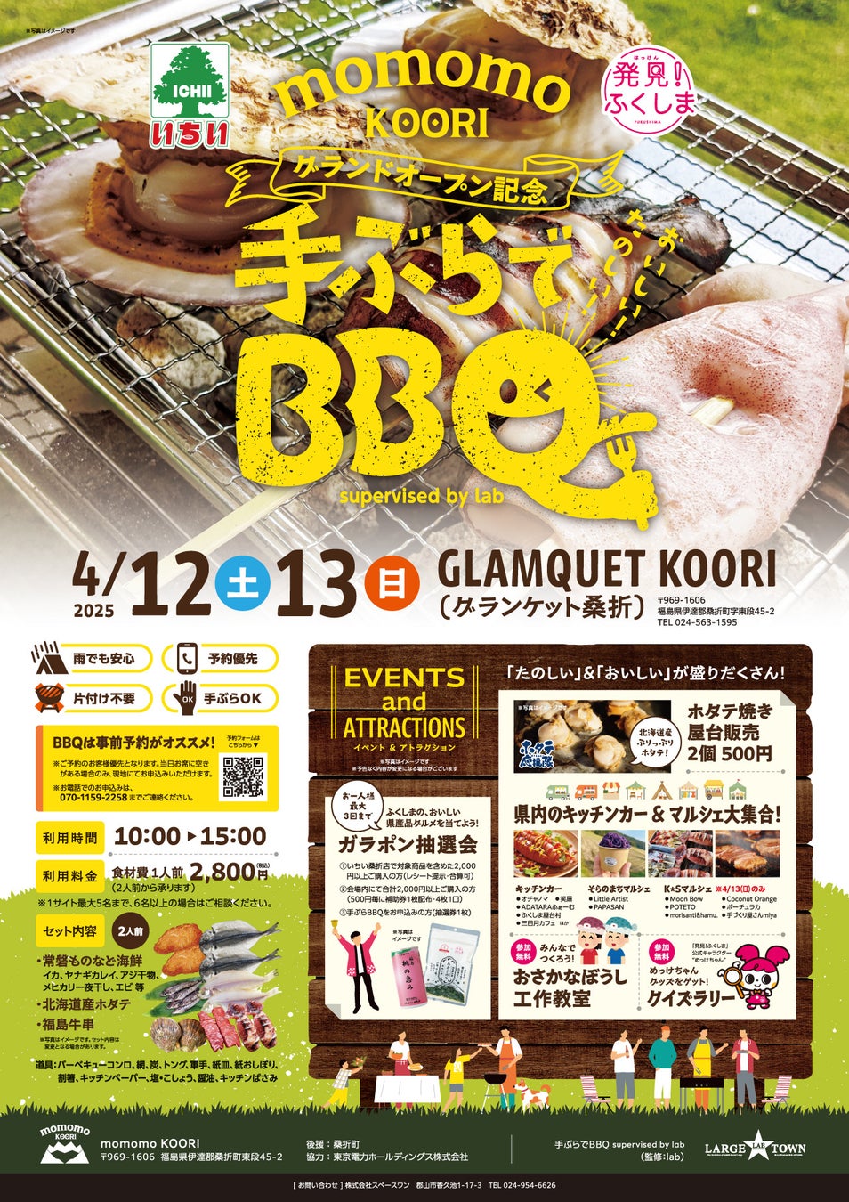株式会社スぺ―スワン(本社:福島県郡山市)は、福島県産食材のおいしさや魅力を消費者の皆様に発信するオンラインストア「ふくしま市場」を運営。この度、東京電力ホールディングス株式会社から委託を受け、『momomoKOORIグランドオープン記念手ぶらでBBQ』を開催いたします。