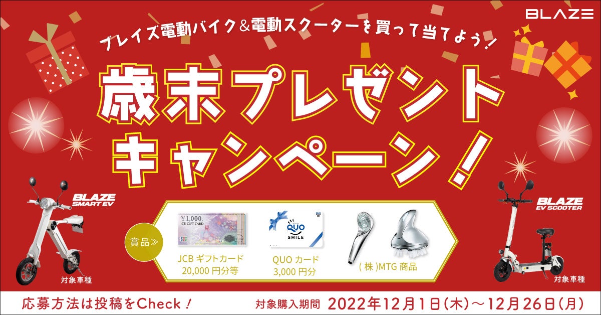 - 「ブレイズ電動バイク&電動スクーター 歳末キャンペーン2022」 詳細