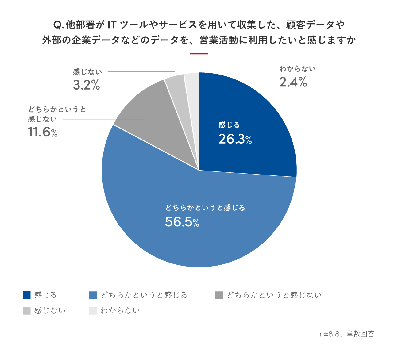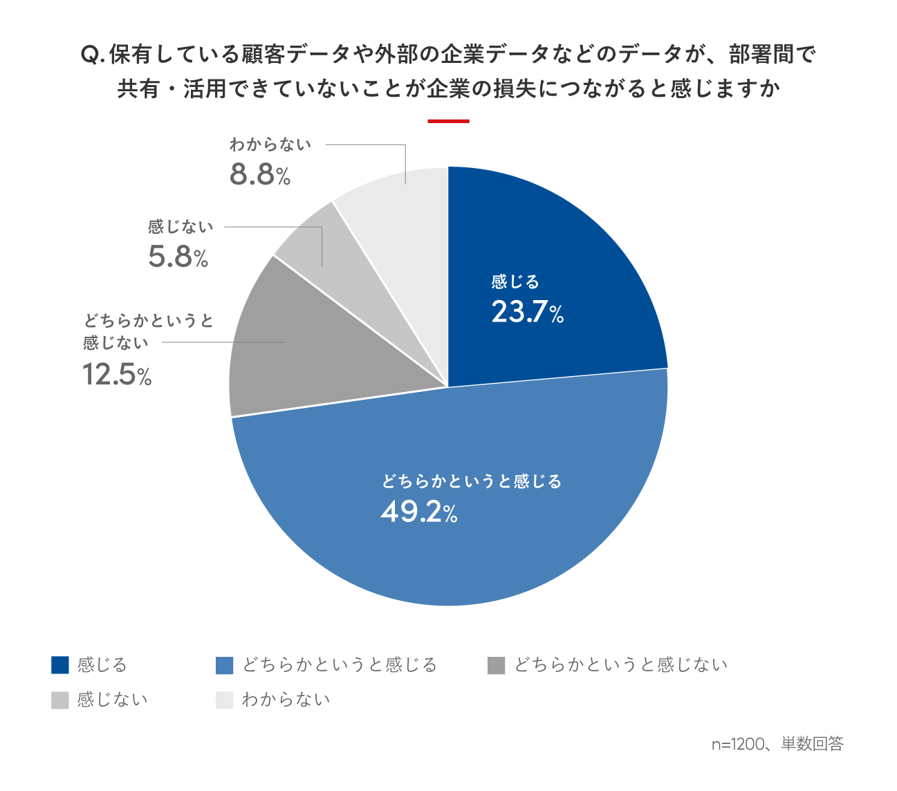 - 他部署が収集した顧客データや外部の企業データなどのデータを、営業活動に利用したいと感じている人は8割超。部署間でデータを共有・活用できていないことが企業の損失につながると感じる人は7割超に。