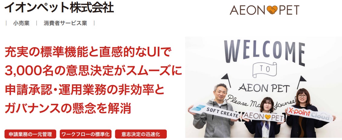 イオンペット株式会社が、クラウド型ワークフロー「X-point Cloud」導入によるワークフロー統合で申請承認業務を一元管理