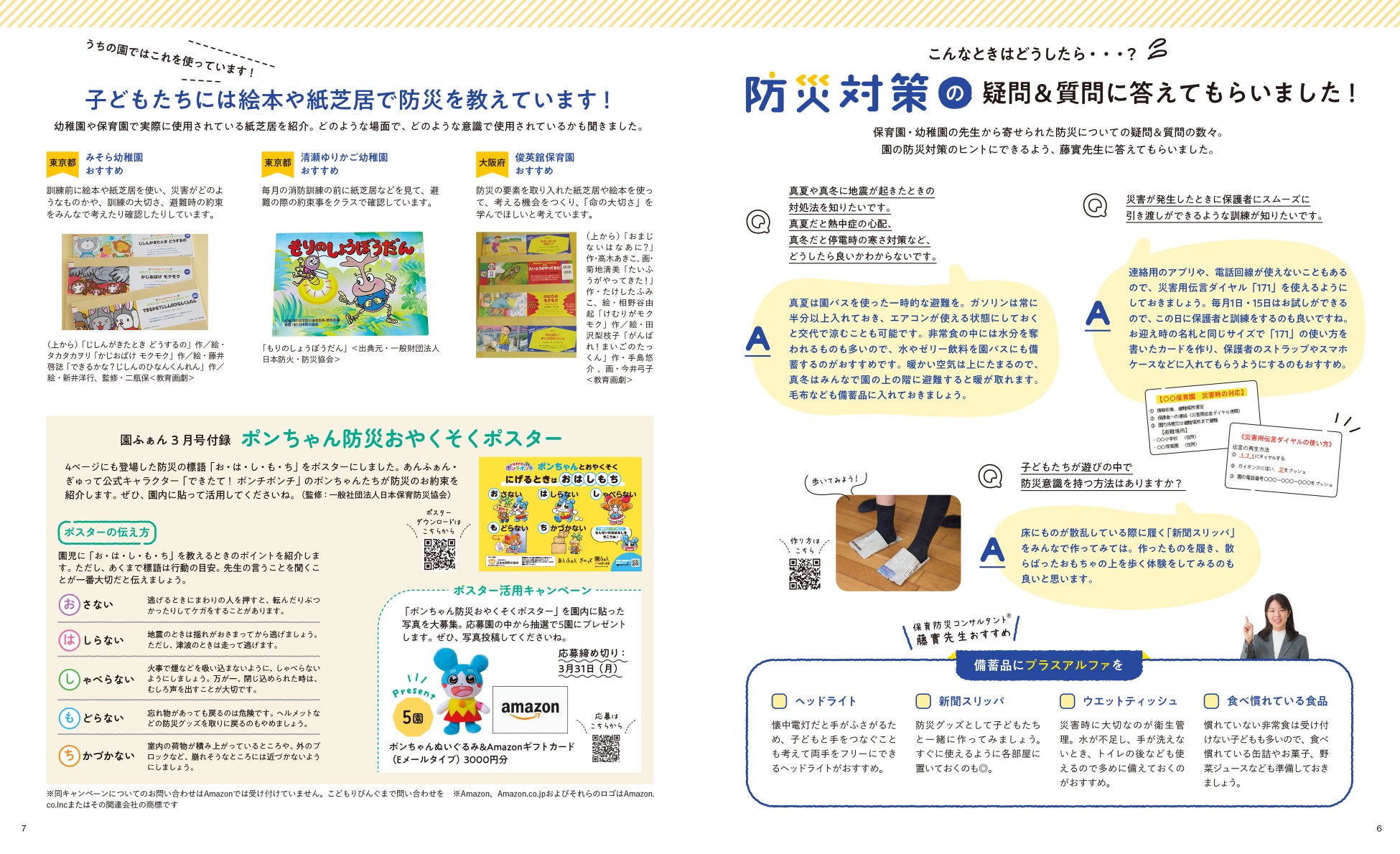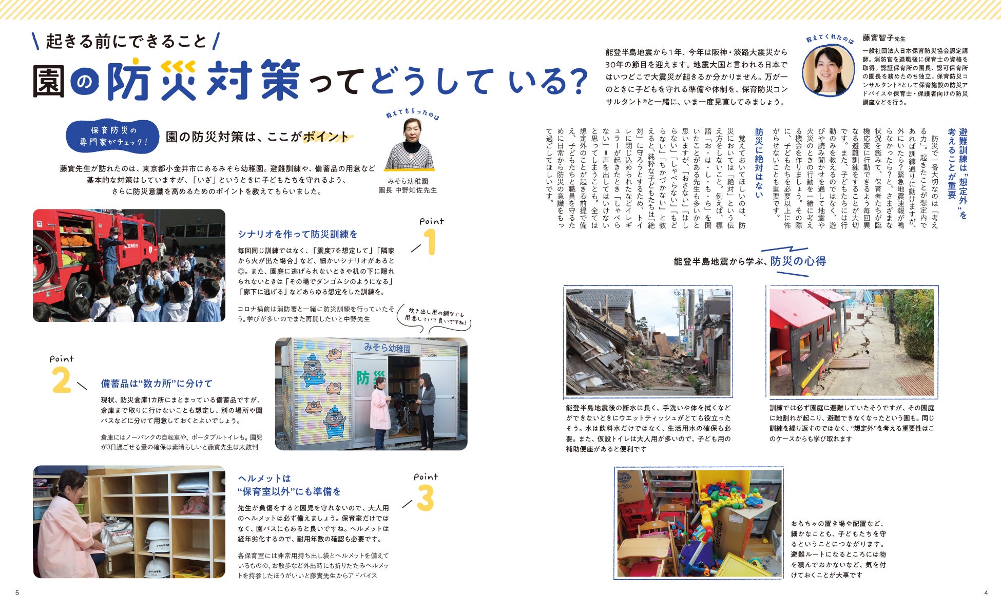 「園ふぁん with 新 幼児と保育」3月号誌面では、園での防災対策を紹介