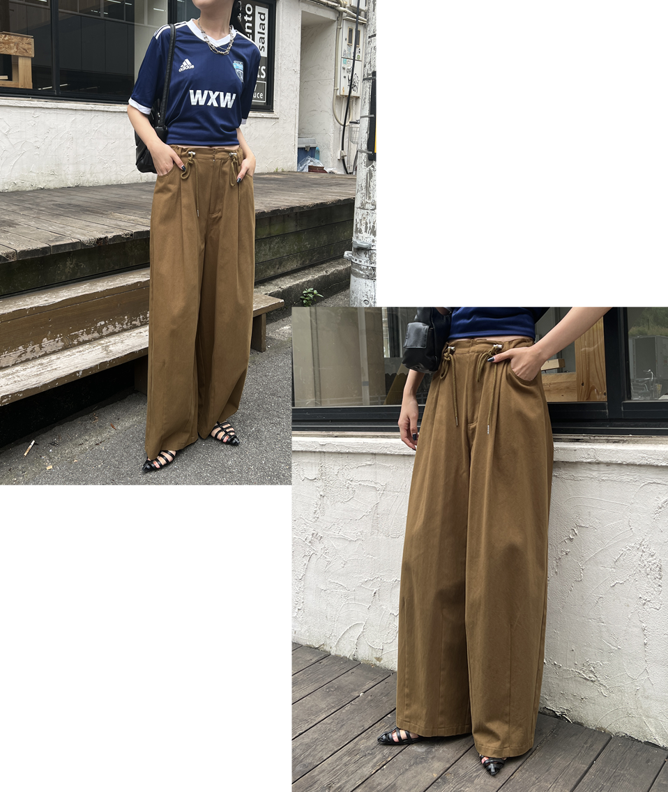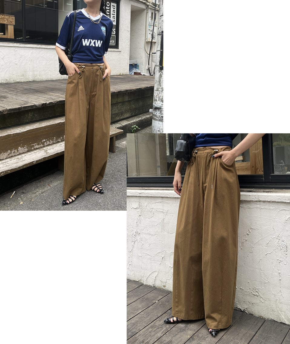 [低身長/高身長サイズ有]コットンツイルウエストドロストバナナカーブパンツ