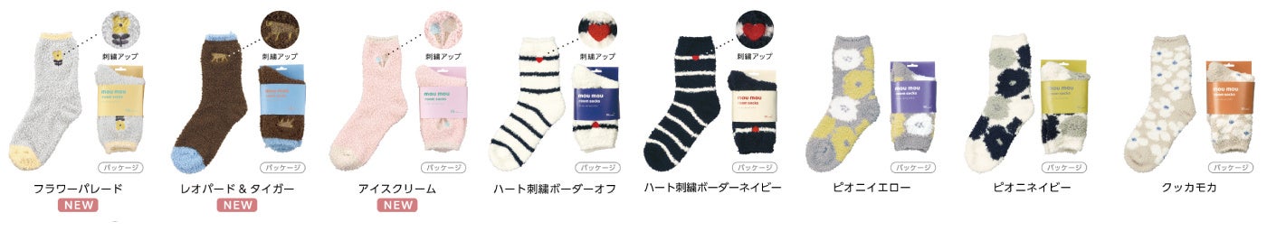 人気のムームールームソックスに、遊び心あふれる刺繍入りのお花・動物・アイスクリームのワンポイントがかわいい新柄が仲間入り!