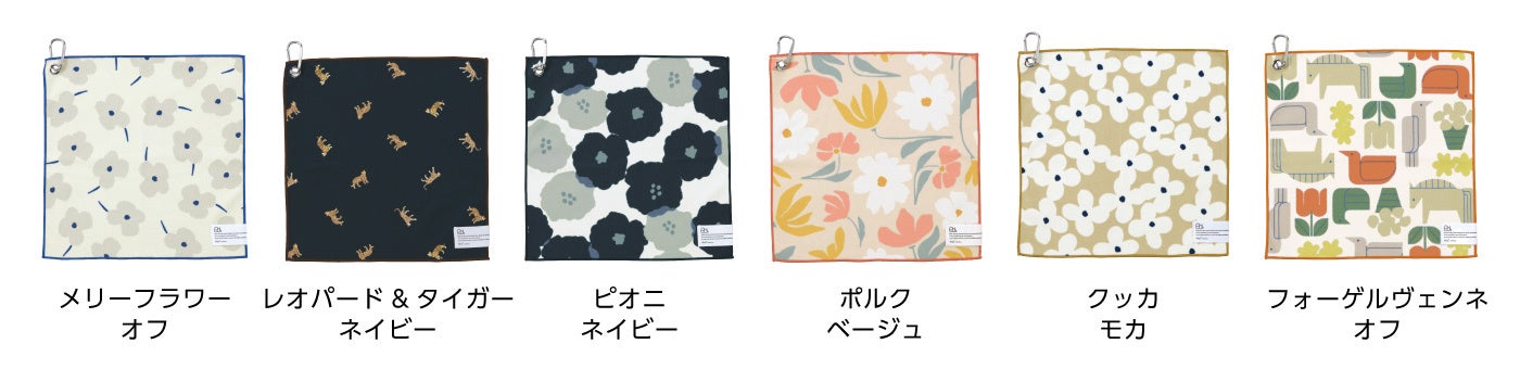 また、カラビナ付きのためバッグやベビーカーに吊るして持ち運びもスマートに!花柄や動物、レトロかわいい幾何学模様など、全6種類のデザインからお気に入りを選べます。