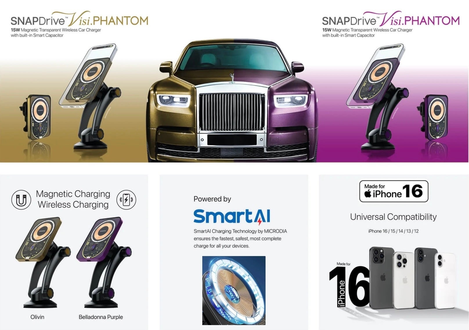 この度、宏福商事合同会社(東京都荒川区)は、世界的なモバイルアクセサリーメーカーMICRODIA(本社:アメリカ)の革新的なワイヤレスカーチャージャー「SnapDrive Visi-Chiron 15W Magnetic Wireless Car Charger」と「SnapDrive Visi-Phantom 15W Magnetic Wireless Car Charger」の2製品を新たに取り扱い開始いたしました。ハイエンド車のラグジュアリーデザインからインスパイアされた外観と、最先端の充電技術を兼ね備えた本製品は、まさに“移動しながらの快適体験”を実現します。