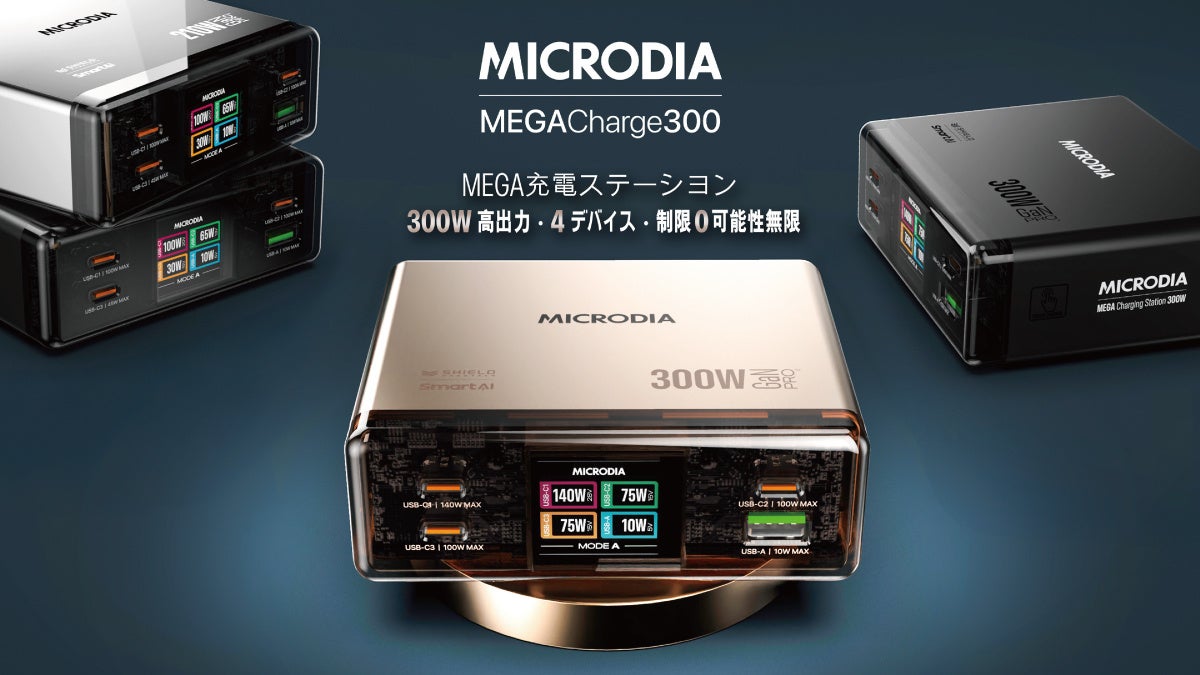 次世代の充電体験を提供する「MegaCharge 300W」。圧倒的なパワー、コンパクトなデザイン、最先端の安全技術を兼ね備えたこの充電器は、忙しい現代人のライフスタイルを革新します。