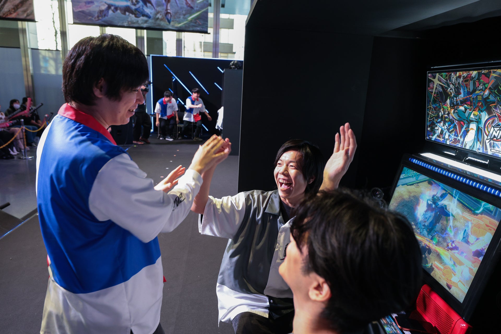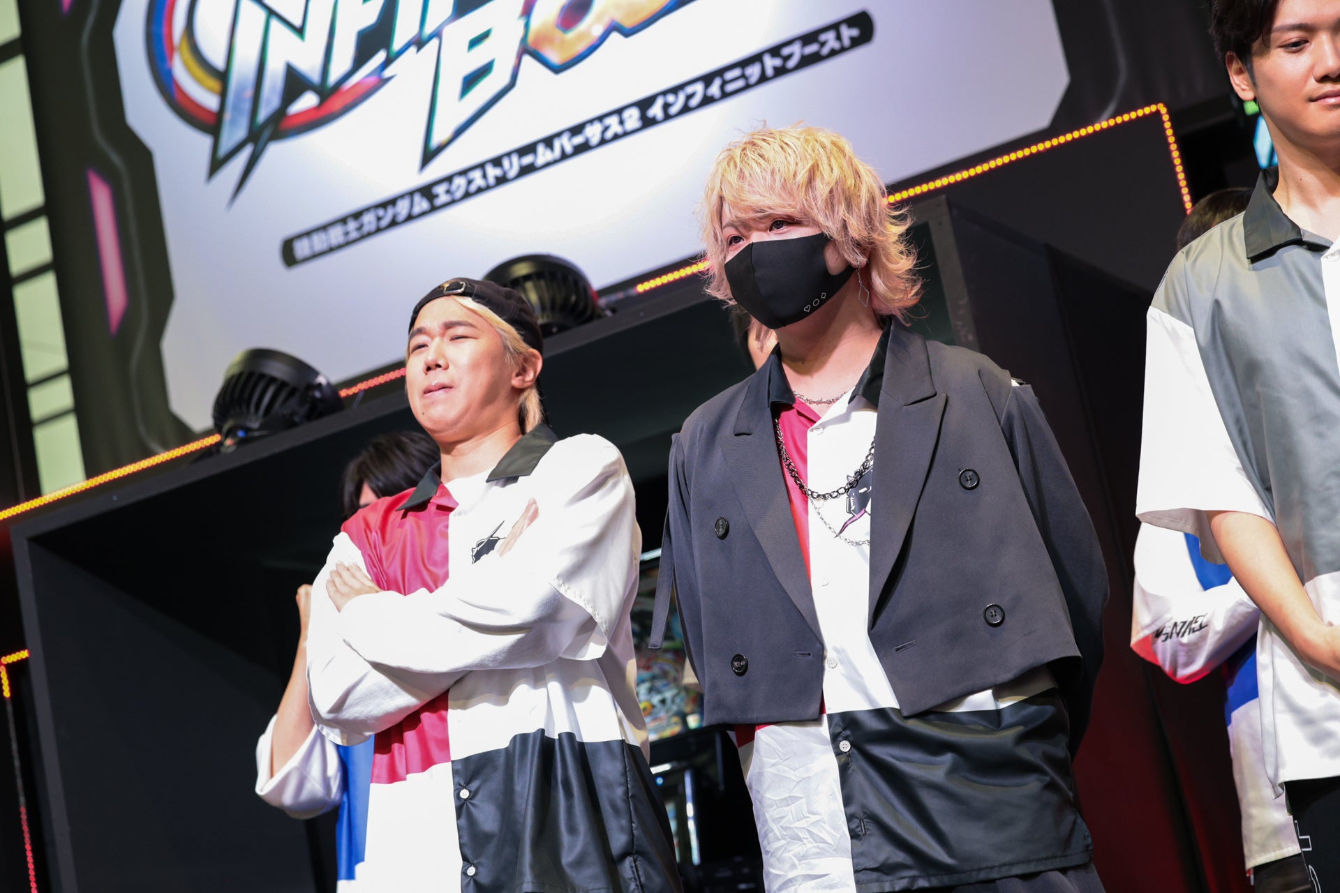 一方、LOSERS1回戦では、【Crazy Raccoon】と【REJECT】が戦いました。 ふらんしすこ選手のカバー力とおぼ選手の使用したモビルスーツ「スサノオ」の攻撃力 が大いに発揮され、 【Crazy Raccoon】が勝利しました。 LOSERS of LOSERSは【REJECT】となり、 Zerost選手、YAS選手とは、「ガンダム関連衣装を着てゲームセンターに行き10勝するまで帰れない」という罰ゲームを後日実行することになりました。罰ゲームをすることになったZerost選手は「(スサノオは)やばいでしょう、あれ。スサノオがわからな過ぎて、、。素敵な機体ですね。素敵だなと思いました。本当に面白いゲームで素敵な機体がいっぱいあると思いました。」と語り会場を沸かせました。 LOSERS2回戦では【Crazy Raccoon】と【DetonationN FocusMe】が戦い【DetonationN FocusMe】が勝利。