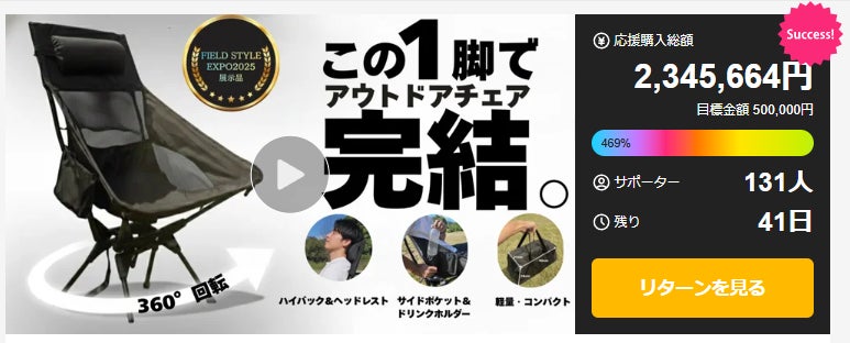 開始後またたく間に目標金額を達成し、2026年2月17日現在で469%を超える230万円以上の支援を得ています。
