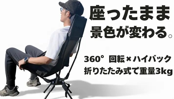 株式会社LeaguEは、360°回転機構を搭載したハイバックアウトドアチェア「AXIS 360」のクラウドファンディングを、2026年2月13日より応援購入サービス・Makuakeにて開始しました。
