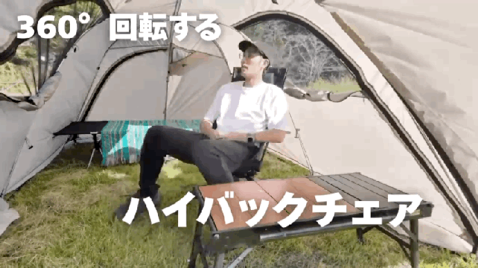 キャンプ・ピクニック・子どもの習い事観戦など、長時間屋外で座るシーンの身体負担と方向転換の不便さを、ハイバック×360°回転で解消します。