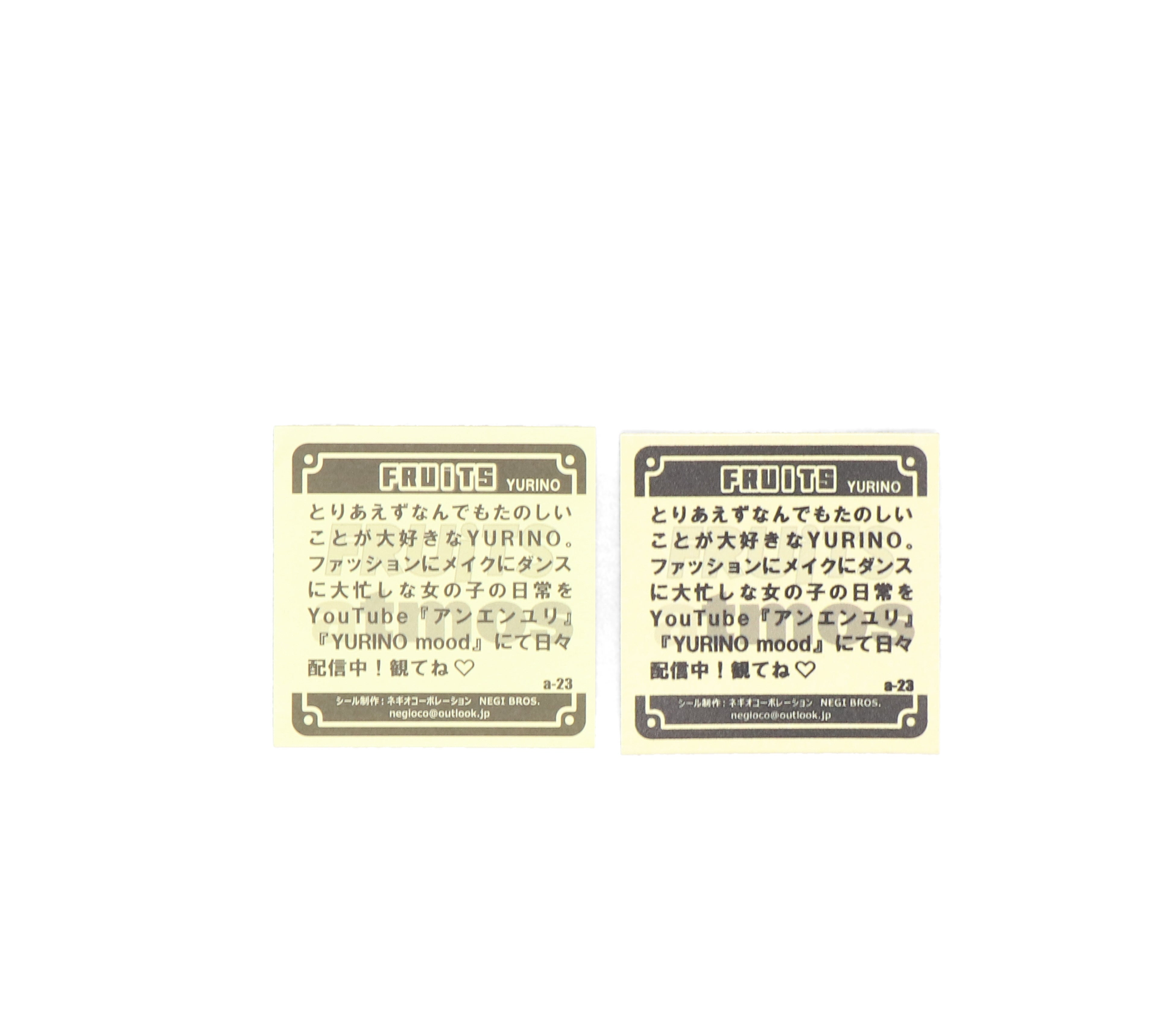 また、付録にはYURINOさんをモデルにしたビックリマン風シールが付いてきます!シールには通常バージョンと当たりとしてキラキラバージョンが存在いたします。是非、この特別なコラボレーションをお見逃しなく。