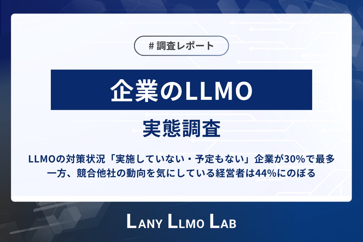 デジタルマーケティング支援事業を展開する株式会社LANY(本社:東京都渋谷区、代表取締役:竹内渓太)は、Webマーケティングを3年以上行っている企業の経営者・役員100名を対象に、企業のLLMO対策実態調査を実施しましたので、お知らせいたします。