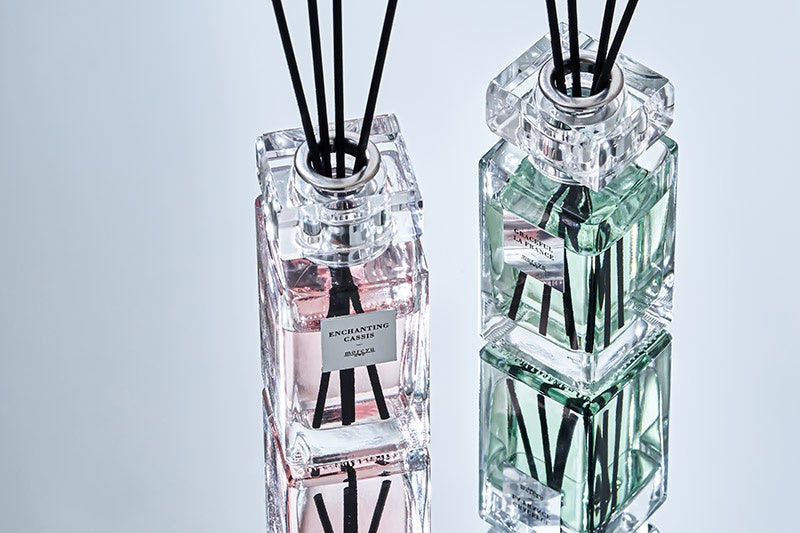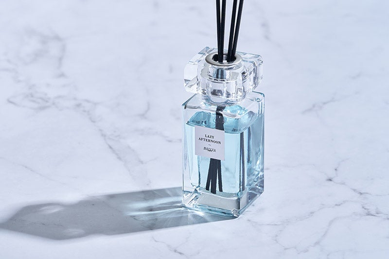 ペールトーンのカラーオイルと香水瓶のようなデザインが、お部屋をラグジュアリーな空間に!光を受けて輝く新作リードディフューザーが、mercyu(メルシーユー)から新発売【ライフオンプロダクツ株式会社】