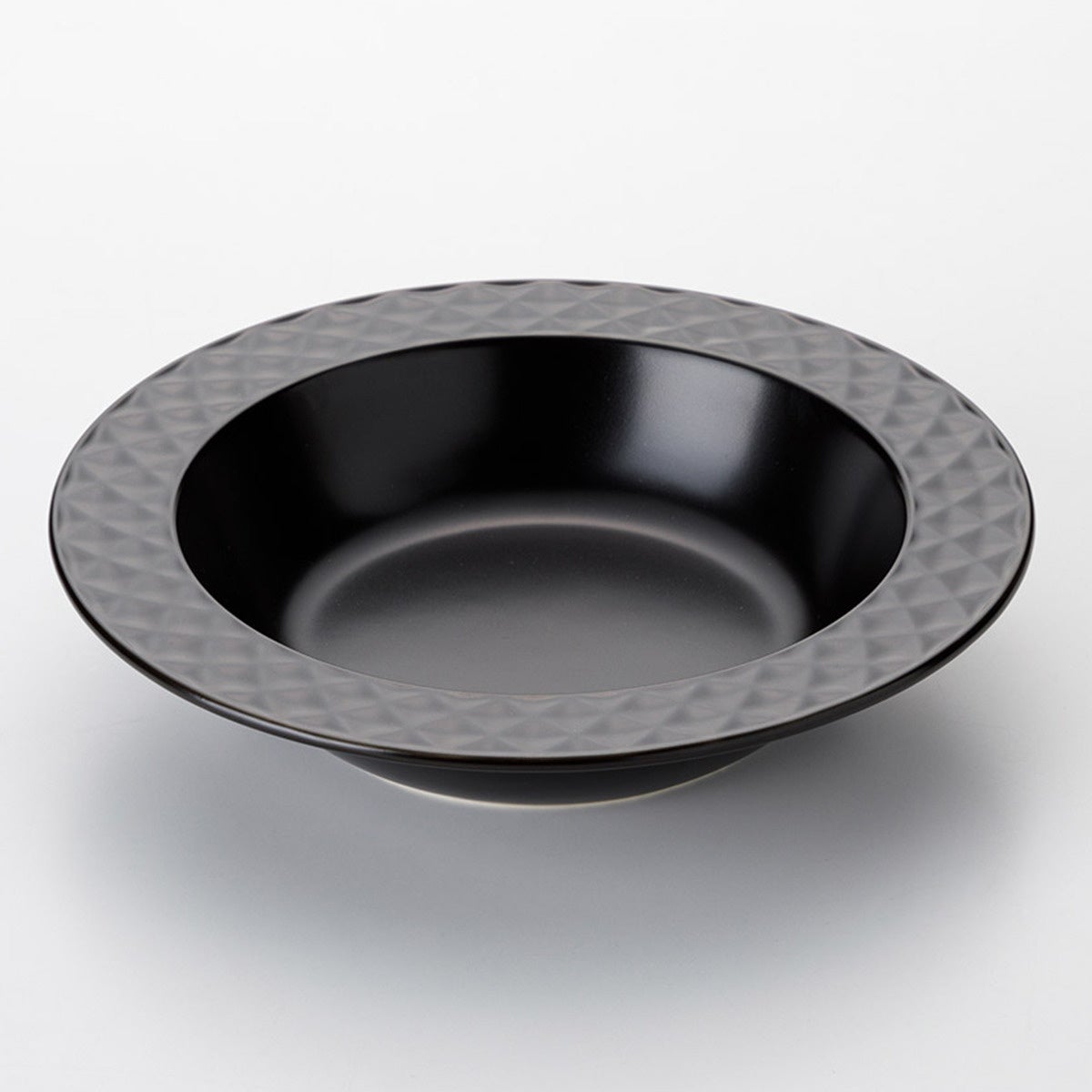 さりげないダイヤ柄と、白黒マット釉薬仕上げで艶のないマットな質感が、モダンでかっこいい雰囲気を演出します。洋食、和食どちらにも使えて、男女問わず人気のカラーの白色と黒色をご用意。無彩色の白や黒が、それぞれの食材の色を際立たせ、料理を引き立てます。