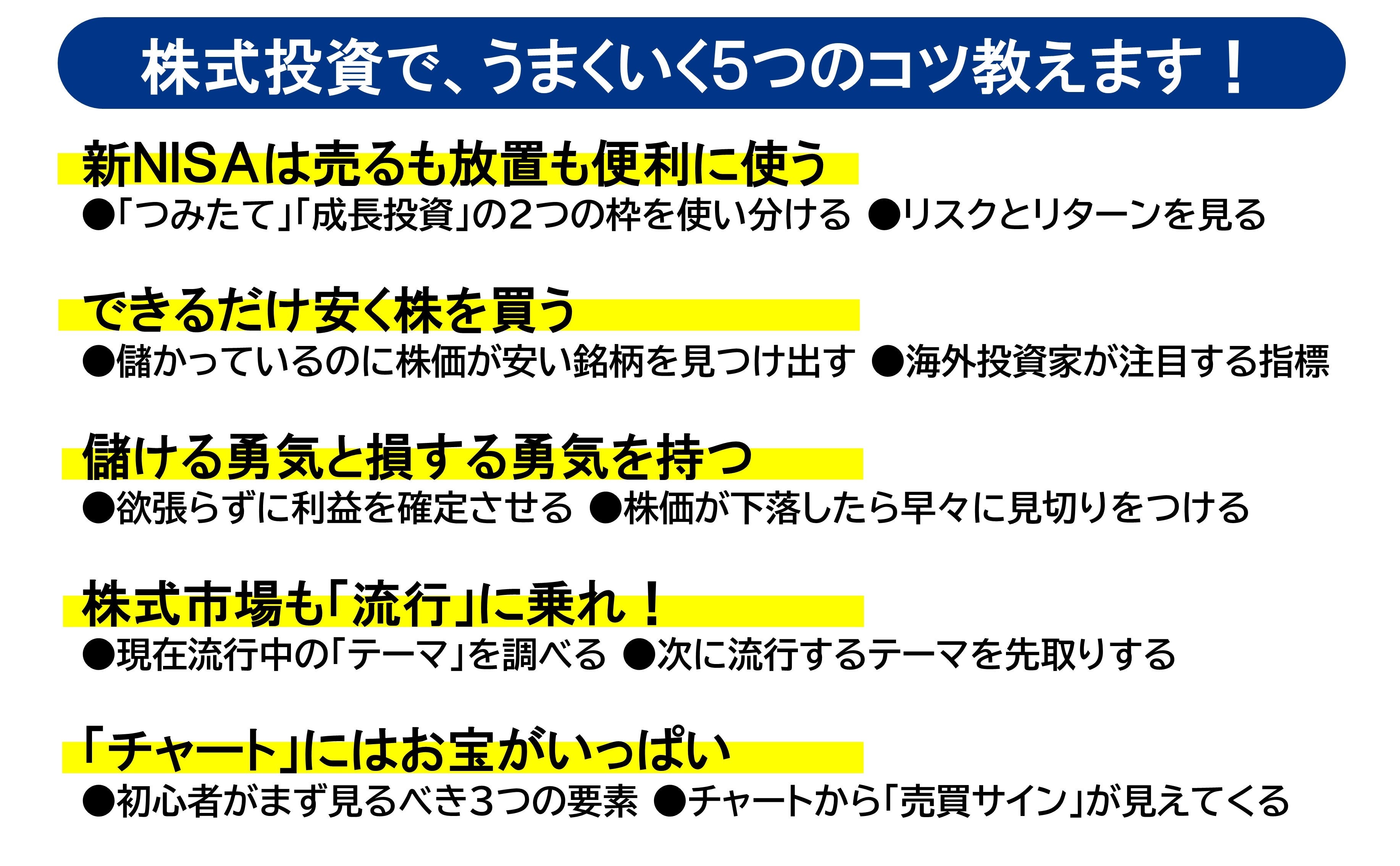 とにかくすぐに始めたい人必見!! 新NISA・iDeco完全対応『投資1年生でもよくわかる 株で稼ぐ5つのコツ』発売!