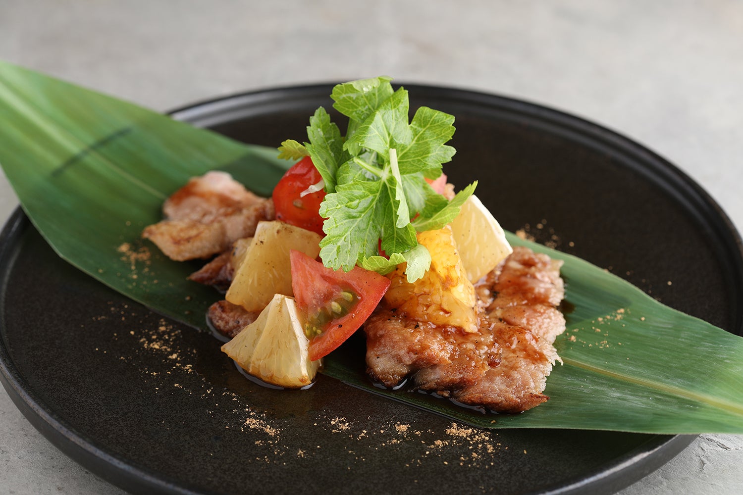 ◇桜山豚 夏トマトと柑橘のソテー(1,380円)
