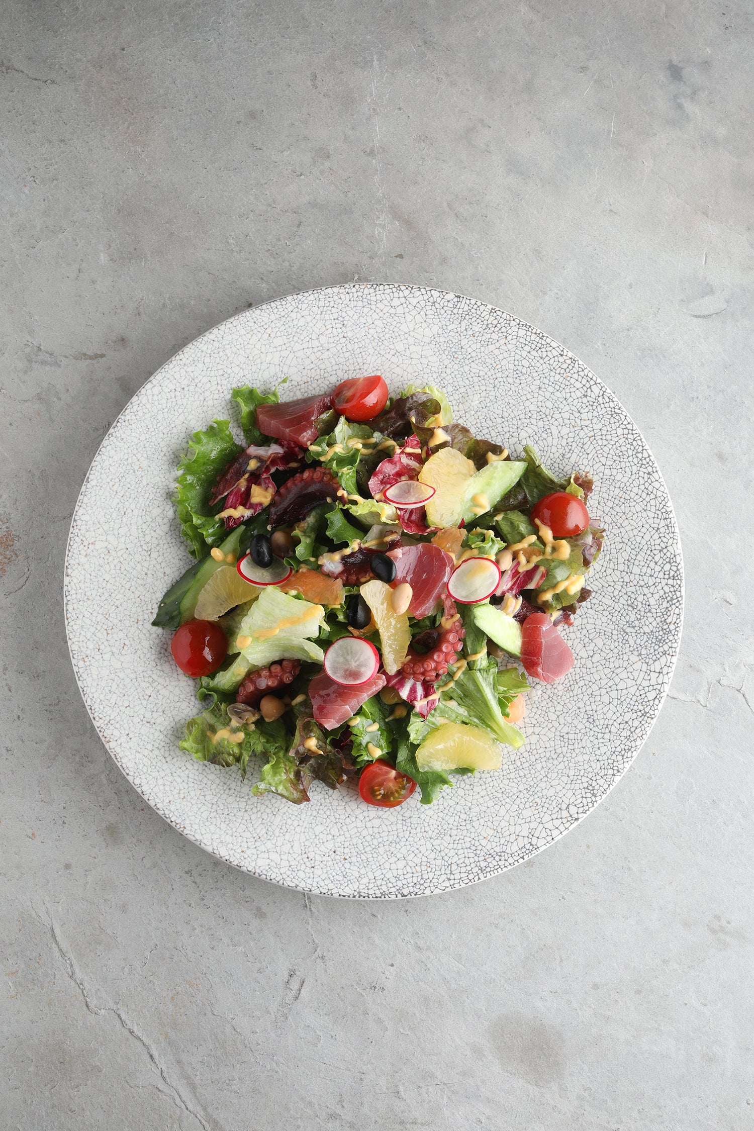 【相馬やなぎだことめばちまぐろ 夏野菜のサラダ】